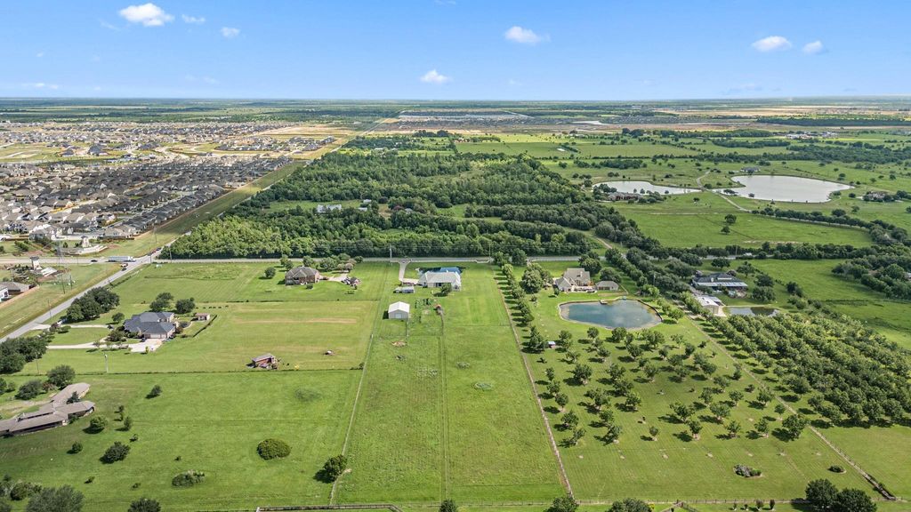 The moment you arrive, you'll be captivated by the glassy surface of the fully stocked pond, reflecting the magnificent sky and country home. The fun-filled ecosystem pond can be enjoyed day and night. Inside the home you'll find spacious rooms with ample storage and updated features throughout. The chef's kitchen boasts an enormous walk-in pantry. Enjoy the picturesque Texas sunsets from the screened-in porch. Every detail of this estate has been carefully considered, with each addition serving a purpose. A 36x48 barn is perfect for raising animals, complete with wash-out stations, a tack room, and three roll-up doors for extra airflow. Harvest fresh vegetables and fruits from the garden and eat like a king with your very own farm raised meats. Whole home Generac system, 2023 Roof, built-out attic, 2025 HVAC, updated perimeter fencing, freshly painted interior/exterior, multiple electrical upgrades, flooring, updated bathrooms and more! Come see for yourself, this is HOME.