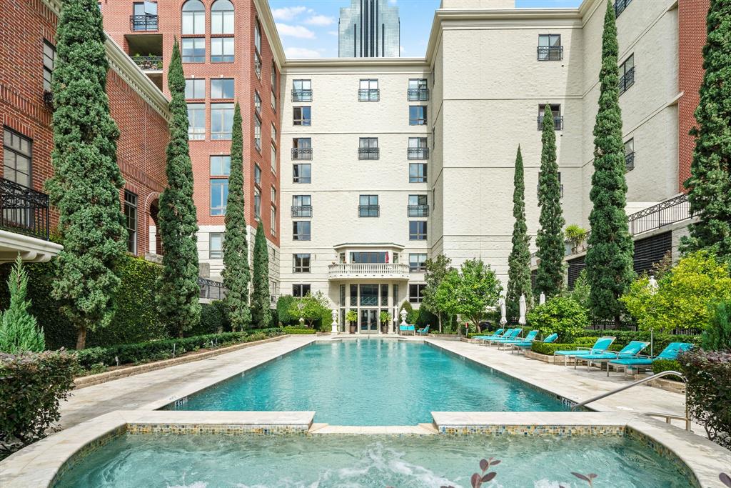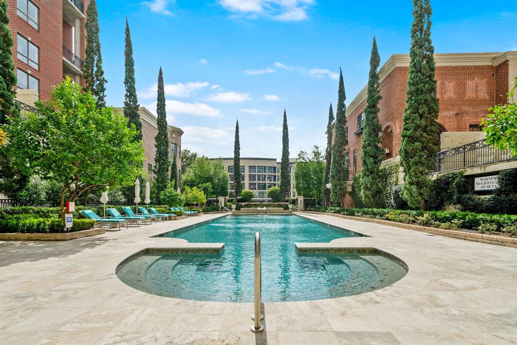 Enjoy Townhouse conveniences living at The Lakes on Post Oak within walking distance to Galleria Mall. Private and secured, indoor 2-car garage with inside gated entrance, full-time monitored security gate and 24-hour guest and concierge service that includes full lawn maintenance. Beautiful views from all floors! Front door access available to street, with private wrought iron fenced garden area. Full use of private saltwater pool year-round, complete with lounges, tables, and grilling equipment. Private, resident-only gated dog park. Townhouse has open floor plan, recently painted interior with hardwoods throughout the main floor. Island kitchen with granite counter tops and plenty of hardwood custom cabinets. Living Room has floor to ceiling paned windows, track lighting and under cabinet lighting features. Large Primary bedroom suite with sitting area and balcony, two walk-in closets. Do not miss out on this great opportunity to own a beautiful Brownstone in the Galleria area.