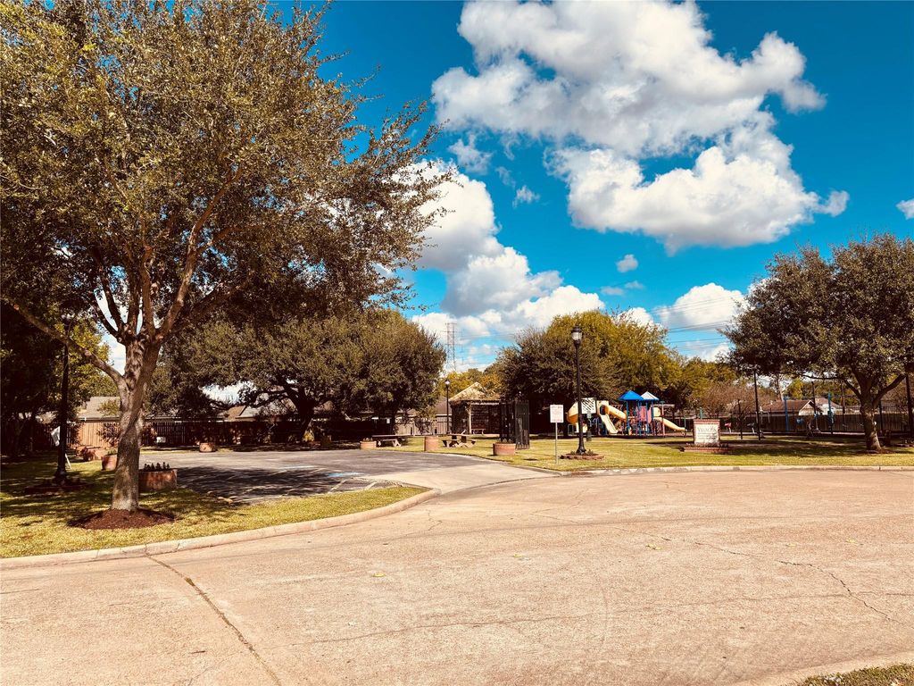 This house is perfect for a family wanting to give it its own personal touch. Community center with pool in walking distance. Another smaller shaded park, picnic tables, playground, swings and plenty of parking just 2 blocks away. Great location! Near Westpark Tollway and Hwy 6. One story with vaulted ceilings with a well distributed layout. The 2 sliding doors (leading to covered patio) were bought in recent years. Updated both baths with GRANITE countertops. All tile flooring including bedrooms. LARGE Primary has a HUGE walk-in closet with 2 doors; that's how big it is!. Lawn around the house is very well maintained. Seller recently bought the stainless steel refrigerator, gas stove, and the black Samsung washer and dryer. All these items are excluded from the sale, except for the stove. These items are sold independently from the house and can be bought now with or without a contract.