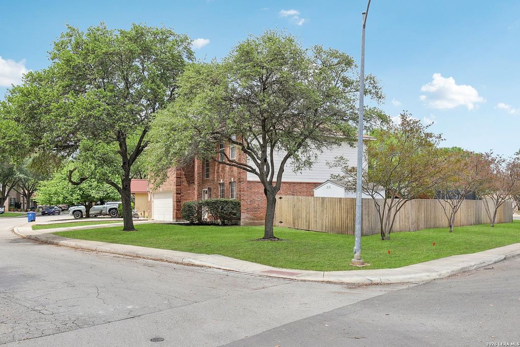 Move-in ready and well maintained, this 3-bedroom, 2.5-bath home with a dedicated office in the highly desirable Preston Hollow subdivision offers a functional layout, strong location, and tasteful updates in North East San Antonio. Ideally located just minutes from Loop 1604, US-281, and I-35, you'll enjoy quick access to major employers, shopping, dining, and everyday conveniences, all while being tucked into a quiet neighborhood setting within walking distance to McAllister Park and Mud Creek Park. Inside, the open-concept floor plan features durable luxury vinyl plank (LVP) flooring throughout the main living areas, decorative tile in the laundry room and half bath, and fresh interior paint that gives the home a clean, updated feel. Brand-new carpet upstairs adds to the move-in ready appeal. A standout feature is the private office, thoughtfully upgraded with custom exterior-style doors featuring waterfall glass and a stylish decorative accent wall, creating a bright yet private wo