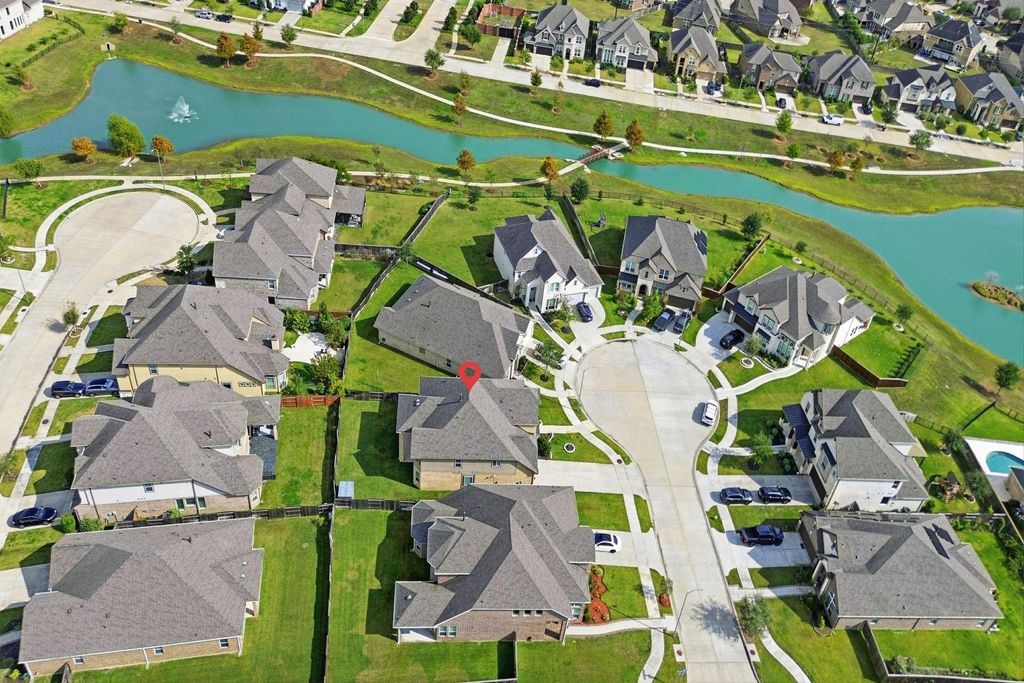 This home boasts actual 3,570 square feet of Net LIVABLE space. Report available to potential buyers upon request. Welcome to this beautifully upgraded two-story home filled with natural light, soaring ceilings, and an inviting open layout.with 2 bedrooms down in the highly sought-after Clements Crossing community. This spacious residence offers 6/7 bedrooms, 4 full baths, and an inviting open floor plan. The bright living area features a wall of windows, soaring ceilings, and abundant natural light. The open kitchen shines with an island, breakfast bar, and stylish cabinetry. The elegant primary suite offers plush comfort, abundant sunlight, and a spa-like bath with dual sinks, a glass-enclosed shower, and a large walk-in closet. Upstairs includes a game room, media room, and generous secondary bedrooms, plus access to a charming covered balcony. Enjoy outdoor living on the covered patio. LOW TAX & Zoned to top-rated FBISD schools.
