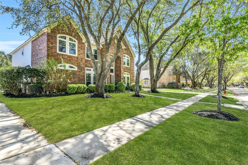 Beautiful two-story home in the desirable Pine Brook subdivision featuring 5 bedrooms, 3.5 baths, and a 3-car garage. A grand entry welcomes you with a stunning wrought iron staircase, complemented by hardwood and tile flooring throughout. The spacious kitchen is equipped with granite countertops and stainless steel appliances, perfect for everyday living and entertaining. This home offers two private home offices, along with a primary suite on the first floor featuring a luxurious Venetian garden bath. Upstairs, enjoy a large game room and generously sized secondary bedrooms. Additional highlights include a wine nook with wine cooler, water softener, and abundant storage space above the 3-car garage. Great air conditioned flex space/gym, located on the back of the garage! Step outside to your private backyard retreat with a heated saltwater pool and spa. Conveniently located near a pocket park, with easy access to I-45, Beltway 8, and just minutes from nearby restaurants and shopping.