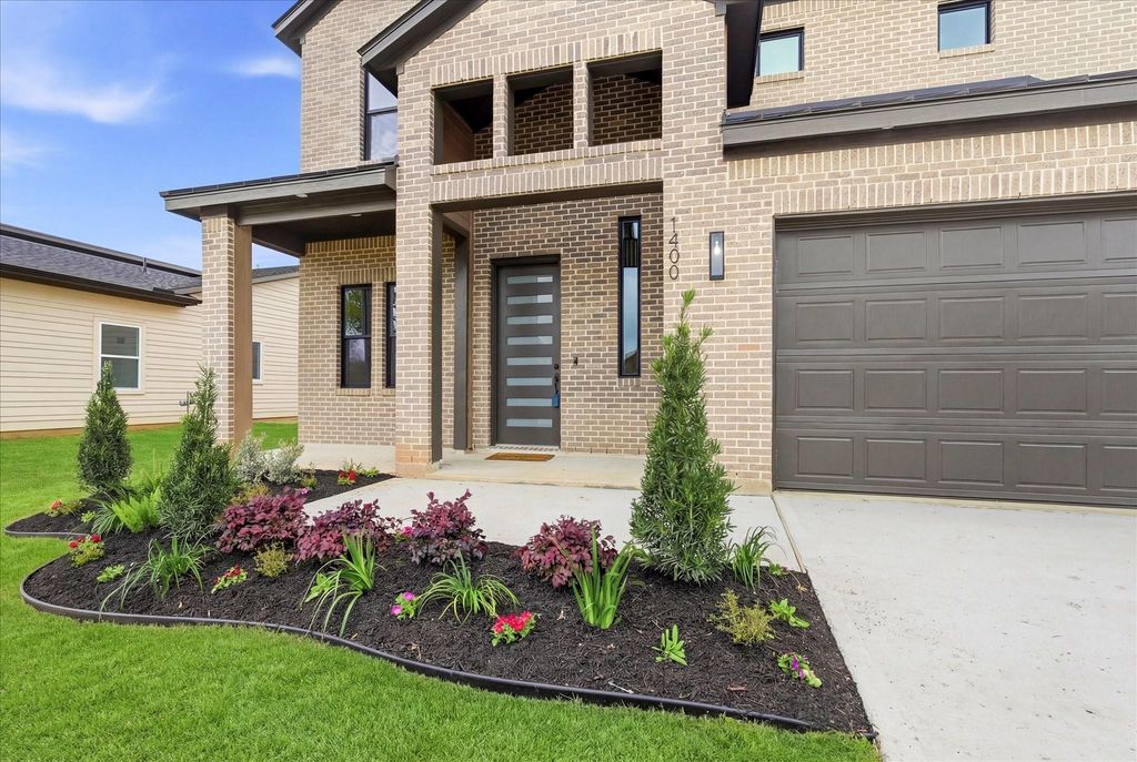 Walking distance to Sylvan Beach and situated on over a quarter-acre lot with no back neighbors, this brand-new two-story home offers space, privacy, and a prime La Porte location. Inside, soaring 21-foot ceilings in the foyer and living room create a dramatic first impression, highlighted by a striking stucco accent wall at the entry. Hardwood flooring runs throughout the entire home, including the staircase and second floor, adding warmth and continuity to the modern design. The kitchen features sleek porcelain countertops and an impressive 48-inch stove, opening seamlessly to the living area with a built-in fireplace and additional storage. The downstairs primary suite offers a spacious retreat with a large walk-in shower and private ensuite, while the expansive backyard and covered patio provide the perfect setting to enjoy the outdoors just moments from the water. Additionally, a fence will be added prior to closing.
