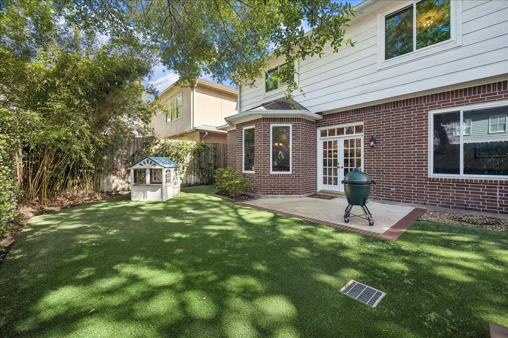 This classic West University brick home perfectly blends timeless charm with transitional features. Open formals feature details like a coffered ceiling in the dining room & expansive windows that bathe the living area with natural light. The heart of the home—the kitchen, family & breakfast rooms—is lined with windows overlooking a shaded, turfed backyard. A compact wet bar is tucked in nearby! The kitchen offers abundant neutral cabinetry, stone counters, & updated appliances, including double ovens. Original hardwoods flow throughout the downstairs. The generous primary suite serves as a true retreat, boasting a recent bath renovation with marble counters, a freestanding tub, separate shower, & dual closets. Secondary bedrooms are ample with walk-in closets and access to a darling, spacious Hollywood bath. Seller updates include efficient double-pane windows, renovated baths, jasmine trimmed fencing, & turf for effortless outdoor living. A West U gem! Per Seller