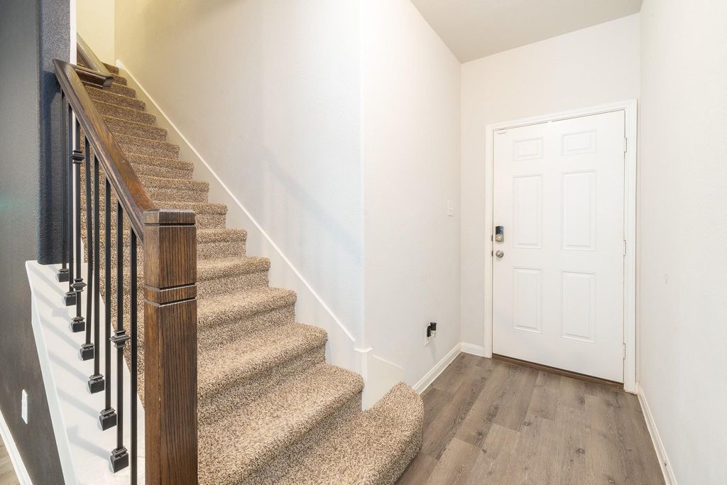 Welcome to this beautifully maintained, move-in-ready home in Camillo Lakes! This charming floorplan features 3 bedrooms, 2.5 bathrooms, and a 2-car garage, blending modern finishes with a functional, inviting layout. The open-concept living area includes vinyl plank flooring and a combined living and dining space—ideal for everyday living and entertaining. The kitchen shines with granite countertops, 42” cabinets, stainless steel appliances, and a large breakfast bar that flows seamlessly into the main living area. Upstairs, all bedrooms are thoughtfully arranged. The spacious primary suite offers plush carpeting, dual vanities, a walk-in shower, and a generous walk-in closet. Secondary bedrooms are well-sized with walk-in closets, perfect for guests, a home office, or hobbies. Enjoy the fully fenced backyard with a covered patio, great for relaxing or entertaining. Schedule your showing today!