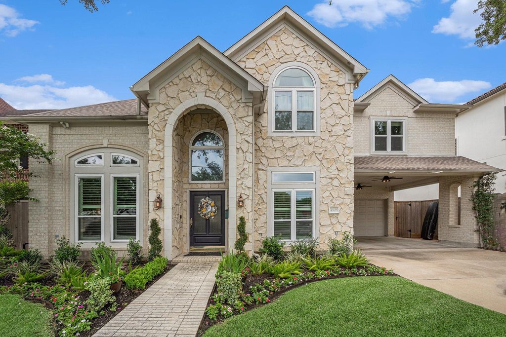 Lovely and elegant 5 bedroom, 4.5 bath home in beautiful Bellaire, Texas! Boasting a stunning stone and brick exterior, this spacious, well insulated home has a fabulous pool in the back and even an elevator to get you to the second floor bedrooms! Gleaming wood floors cover the grand downstairs and upstairs living spaces. The gorgeous island kitchen and breakfast room open to a den to create a fabulous space in which to live. Four bedrooms on the second floor with one bedroom on the third floor. Large second floor gameroom with wet bar. Huge primary bedroom with fireplace, elegant ensuite and large his and hers closets! There are 3 high efficiency air-conditioning systems to get the temperature just right! A mosquito misting system around the perimeter of the back yard is a nice touch! Covered patio and covered balcony overlooking pool. High ceilings downstairs and upstairs! Two hot water heaters. Porte cochere. Too fine to miss! Make an appointment to view this marvelous home today!
