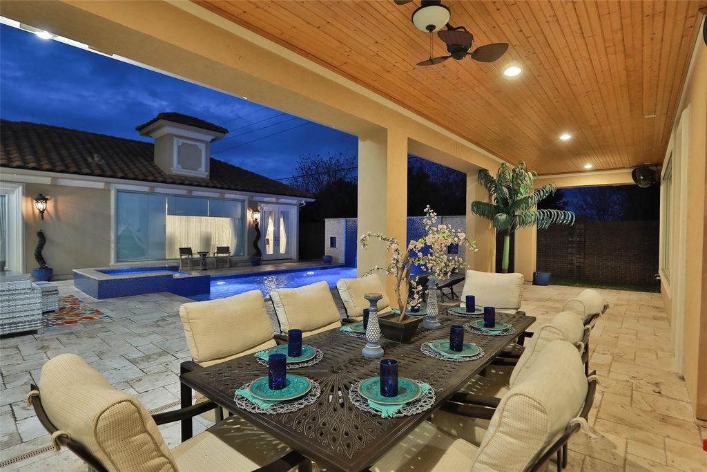 Breathtaking elegance describes this Mediterranean Estate located in an exclusive gated enclave. No expense was spared in the one-of-a-kind décor selections that are truly unique and gorgeous! Enter through the double arched Cantera doors, to the crystal chandelier in the two-story entry w/ glowing 4ft x 4ft Crema Marfil Tile floors & sparkling custom trim framing custom painted walls. The striking features of the home continue through the formal dining room where you will see dual crystal chandeliers & sconces, stepped ceiling w/ cove lighting & custom painted walls. The kitchen has a definite WOW factor with Venetian plaster on the walls & ceiling, sparkling chandelier in the breakfast area, top of the line stainless appliances: Thermador gas range & SubZero Refrigerator/freezer. The kitchen is adjacent to the den & full walk-in bar. These rooms have butted glass windows looking out to the pool & covered patio. This house is AMAZING! You just have to see it to take it all in!