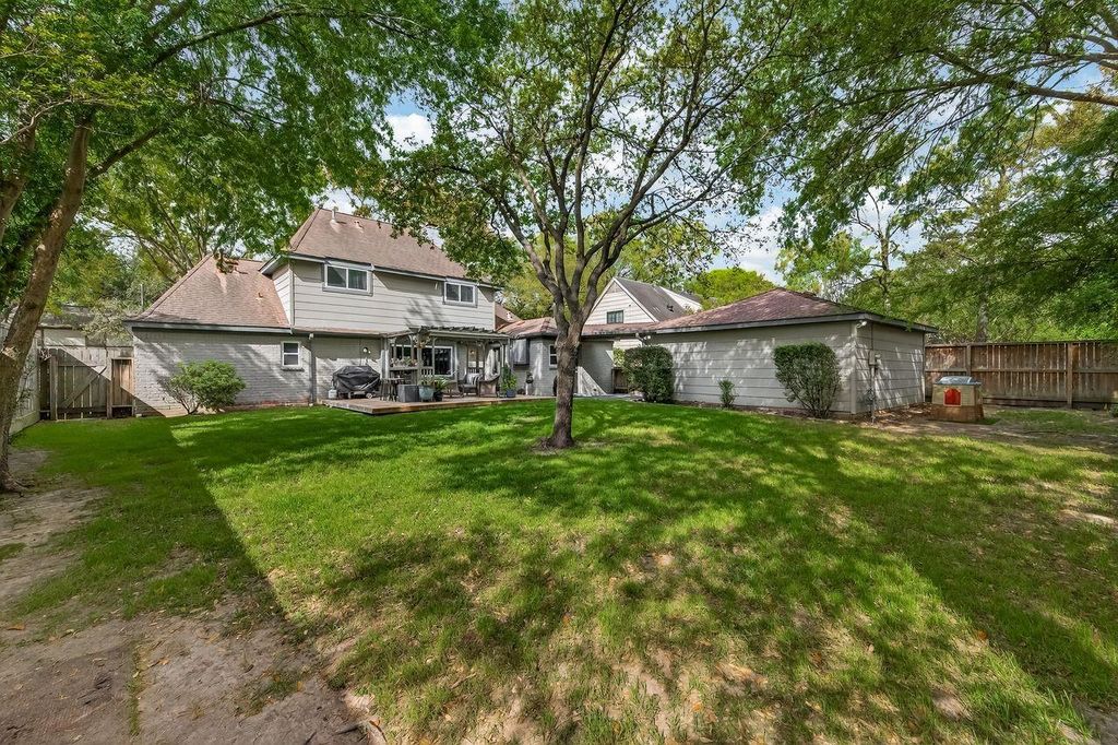 Step inside this fabulous and immaculately maintained 4 bed/2.5 bath home in sought after Lakeside Place! This charming 2-story home has stunning curb appeal w/ mature trees, fresh landscaping, large windows throughout bringing in an abundance of natural light. You are greeted w/ a welcoming entryway & elegant staircase w/ wrought iron balusters. The modern dining area has a stylish built-in bar w/ wine cooler/wine rack & opens to a gorgeous kitchen w/ breakfast room, stainless appliances, recessed lighting & ample storage. Family room features a charming brick fireplace, built-in cabinets & gorgeous wood look tile flooring throughout. The downstairs spacious Primary bathroom has double sinks/vanity space, shower w/ bench seating. Inviting outdoor patio w/ a wooden pergola, perfect for relaxation or entertaining. Lush green lawn surrounded by mature trees & privacy fencing. Plumbing & foundation work 2026 w/ warranties. Only minutes from Club Westside, City Centre & Energy Corridor!