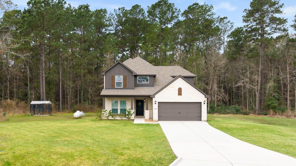 Nestled on nearly an acre, this picturesque two-story home offers tranquility at the end of a cul-de-sac. This two-story home boasts a stone elevation, covered front porch, 42" cabinets, energy efficient slate appliances, and a designer backsplash. The primary suite on the 1st floor features high ceilings, a separate tub and shower, and a walk-in closet. Upstairs, find 3 bedrooms and a game room. The property allows for a dream shop, boat, RV, or trailer storage. Whole home water filtration system, front yard sprinklers, gutters, structured wiring, USB outlets, and media outlets are among the many upgrades. Don't miss out on this gem! Contact me today to schedule a showing.