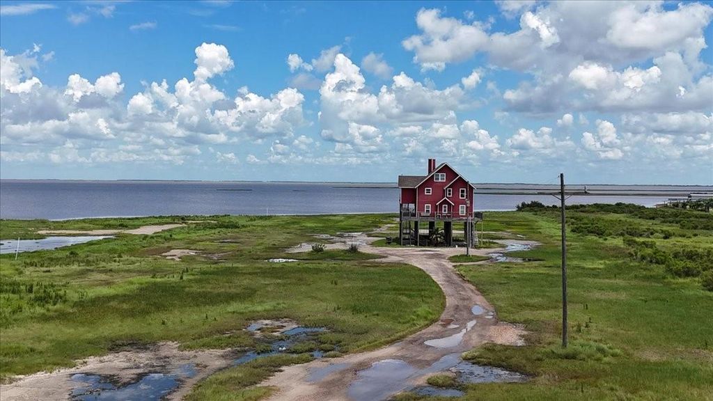 Bayfront retreat on 9.23 acres with endless opportunities on Re Platting to fit your needs! This stunning 3-story home offers breathtaking sunset views over Rollover Bay and panoramic beach vistas for miles. Featuring 3 bedrooms, 3 full baths, and a spacious loft perfect for extra sleeping space or a game room. Open-concept living, soaring ceilings, and walls of windows bring the outdoors in. Ideal for entertaining or relaxing, with plenty of room to expand, build, or just enjoy the privacy. Rare opportunity for acreage and water views on the peninsula!