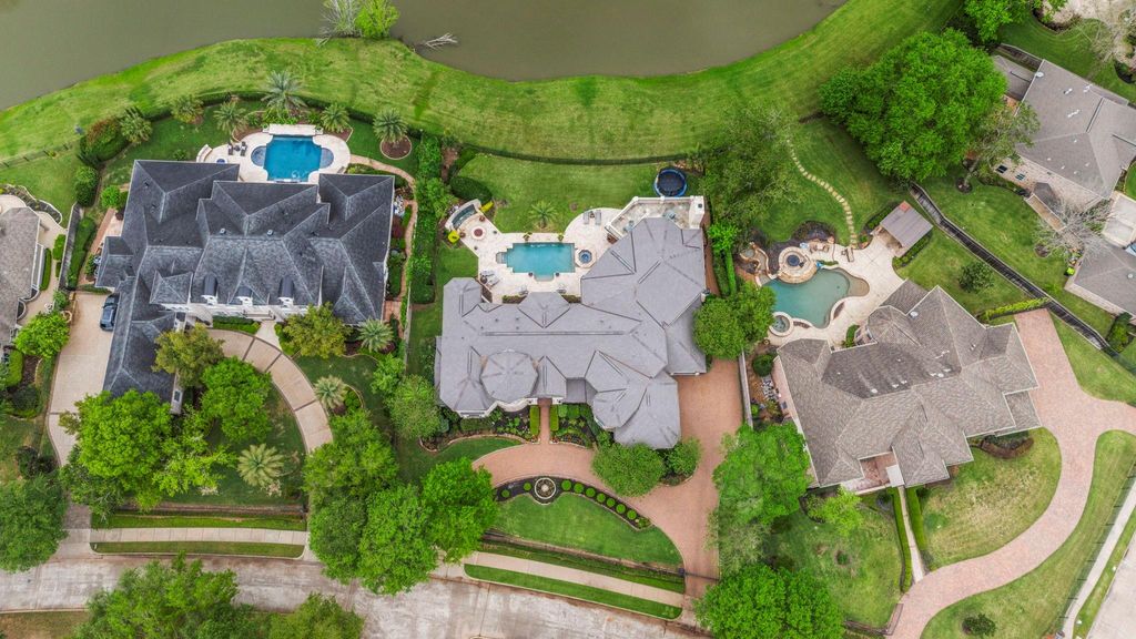 Presenting the epitome of Elegance! Nestled behind remotely controlled double gates, This Sterling Classic Custom Home sits on over 1/2 acre and is truly a timeless showplace. This mini estate represents the finest in quality and design. Featuring a gourmet kitchen that truly is a chef's delight! A primary suite that is the essence of luxury, with sitting area in primary bedroom and a primary bath featuring marble floors, a soaking tub in front of the fireplace and a walk thru granite shower. The 5 other oversized bedrooms all have en suite baths. Downstairs features a 2-story library, dining and living area, wet bar with a wine closet and a family room. Upstairs also has 2 media rooms, 1 has a powder room and wine bar. 2nd story also has a game room and a dual computer nook. Plus, a huge terrace. Backyard oasis features a lanai with covered outdoor kitchen, living area with fireplace, sparkling pool, spa, firepit, water wall and beautiful palm trees! Breathtaking!