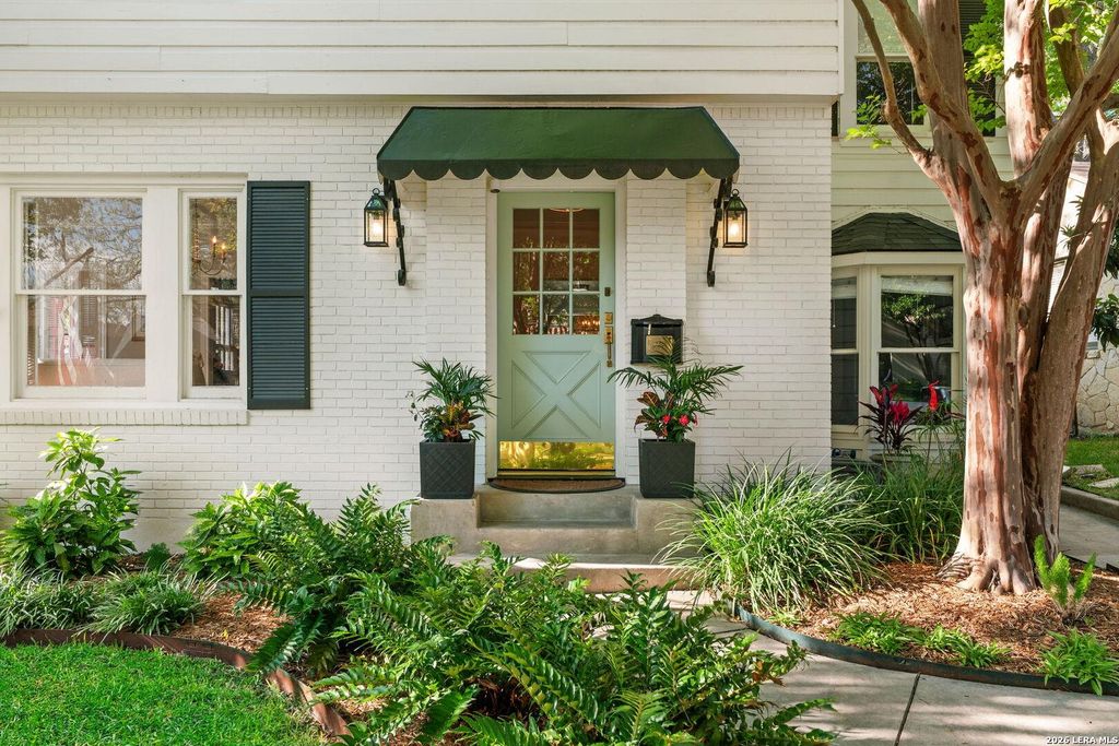 Situated on a treelined street in the heart of Alamo Heights, 324 Wildrose offers classic curb appeal with a manicured lawn, mature canopy trees, and a charming mint door framed by lantern lighting and shutters. This central location provides convenient access to area parks, museums, dining, and shopping, along with simple routes to Downtown and major thoroughfares. Inside, the home blends timeless architecture with a bright, updated feel-original hardwood floors, tall windows with wide shutters, detailed millwork, and a graceful staircase create a refined first impression from the foyer. Formal living and dining rooms anchor the front of the home, while a thoughtfully designed family room addition at the rear provides a more casual gathering space and expands the functional living area. The residence includes 4 bedrooms, 3 bathrooms, and approximately 2,647 square feet, offering versatility for guest accommodations, home office, or playroom. Wellproportioned rooms, excellent natural