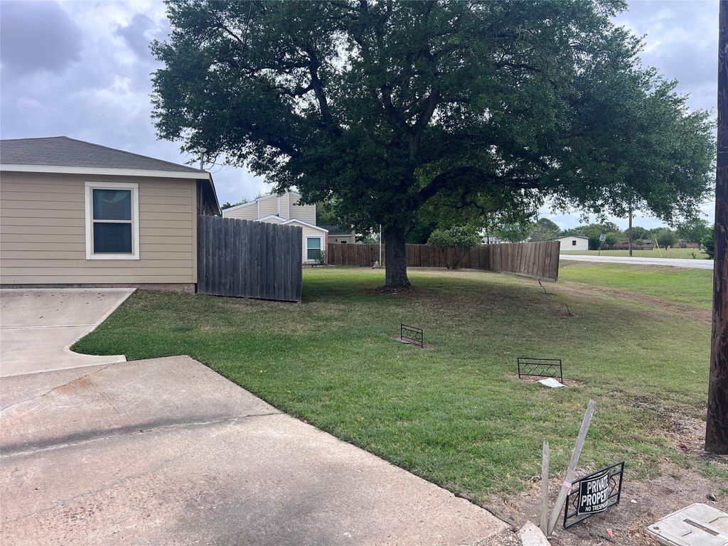 This 3 bedroom, 1 bath, one-story home was built with energy efficiency in mind. The open concept kitchen flows easily into the living-dining combo area making this home perfect for entertaining. Lots of nice sized energy efficient Low-E windows throughout the home allow for natural light all through the day. For added privacy, the home sits on a larger corner lot so you'll have no right-side neighbors. The living area has durable vinyl plank flooring and there's carpet in all the bedrooms. The classic white cabinetry and black appliances give this home a lovely modern feel. Built in 2022, the roof and HVAC, are only 4 years old. You'll find this home in a quiet cul-de-sac just up the street from the Wharton Country Club. There's a fenced back side entry and plenty of convenient parking in the rear with easy access from Old Lane City Road.