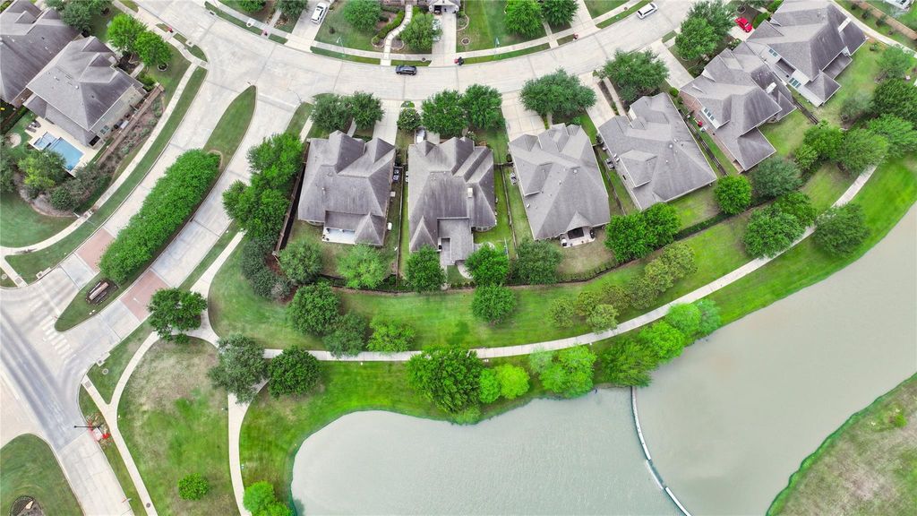 Perry home with a stunning water view, no back neighbors, located on a corner homesite. Two story mahogany front door entrance on a brick and stone stunning elevation. Office on 1st floor, and formal dining room, coming off of the foyer. Family room features an 18-foot ceiling, wall of windows, cast-stone fireplace, and is open to the kitchen and breakfast area. Kitchen features an angled island with seating space, granite countertops, a walk-in pantry, 42-inch raised panel cabinets and a Butler's pantry. Primary on the 1st floor has his and hers closets, ample natural light, soaking tub, and double bathroom sinks on opposite walls. There is a secondary bedroom on the 1st floor that has its own en suite bath. 6 bedrooms with whole house water softener, security system, and generator. Front and back sprinklers, covered back patio with gas access. Residents can enjoy a clubhouse, splash pad and swimming, tennis, basketball and sports fields. Students attend recognized Katy ISD schools.