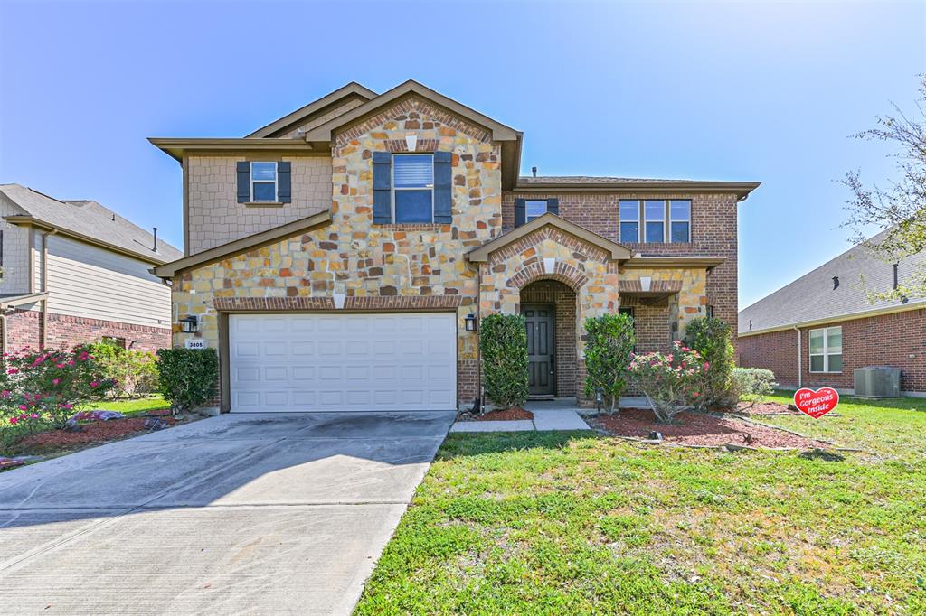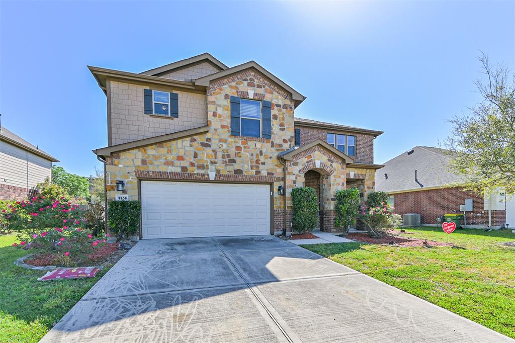 Located in a desirable neighborhood, this home is conveniently zoned to TOP RATED Pearland ISD schools, Pearland Recreation Center, shopping and dining, making it an ideal choice for families seeking both style and functionality! This stunning 4-bedroom, 2.5 bath, two-story home features a beautiful stone and brick exterior, offering both durability and curb appeal. Inside, the home boasts an open floor plan with a built-in surround sound system, perfect for entertaining. Natural sunlight filters throughout the home creating a vibrant atmosphere. The kitchen is a Chef's dream, equipped with elegant granite countertops, 42" cabinets, and ample storage space. The spacious bedrooms provide comfort, while the primary suite includes a luxurious ensuite bath.