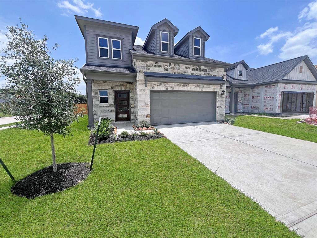 The Robin II by Smith Douglas Homes is located in the Anderson Lake community of Houston and features a stunning two-story, four-bedroom, 2.5-bath home designed for modern living. Its open-concept kitchen and dining area feature granite countertops, a spacious island with pendant lighting, and a sleek single-bowl undermount stainless steel sink. The family room boasts a linear electric fireplace, while luxury vinyl plank flooring extends through the main living areas and all wet spaces. The primary suite offers dual vanities, a garden tub, and a separate shower for ultimate relaxation. Additional highlights include a covered rear patio, Tech Shield roofing for energy efficiency, and more. AVAILABLE NOW!