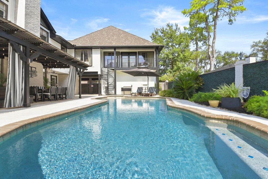 Beautifully renovated 5-bedroom home with swimming pool in sought-after Barkers Landing. This classic home combines timeless charm with modern design, featuring premium waterproof laminate flooring throughout. The fully remodeled kitchen boasts custom cabinetry, quartz countertops, and high-end GE Profile, Café, and Monogram appliances, including a double oven and induction cooktop. An addition above the garage offers a private suite with a spiral staircase and balcony overlooking the pool—ideal for guests, an office, or a gym. The primary suite features a spa-like shower, custom vanity, and huge walk-in closet. Additional upgrades include PEX plumbing, fresh paint, a German schmear brick finish, and a 50-year roof (2018). The renovated laundry room offers custom cabinetry and a deep sink. Plantation shutters, built-ins, and new cabinetry add charm. Never flooded, in one of West Houston’s most desirable communities.