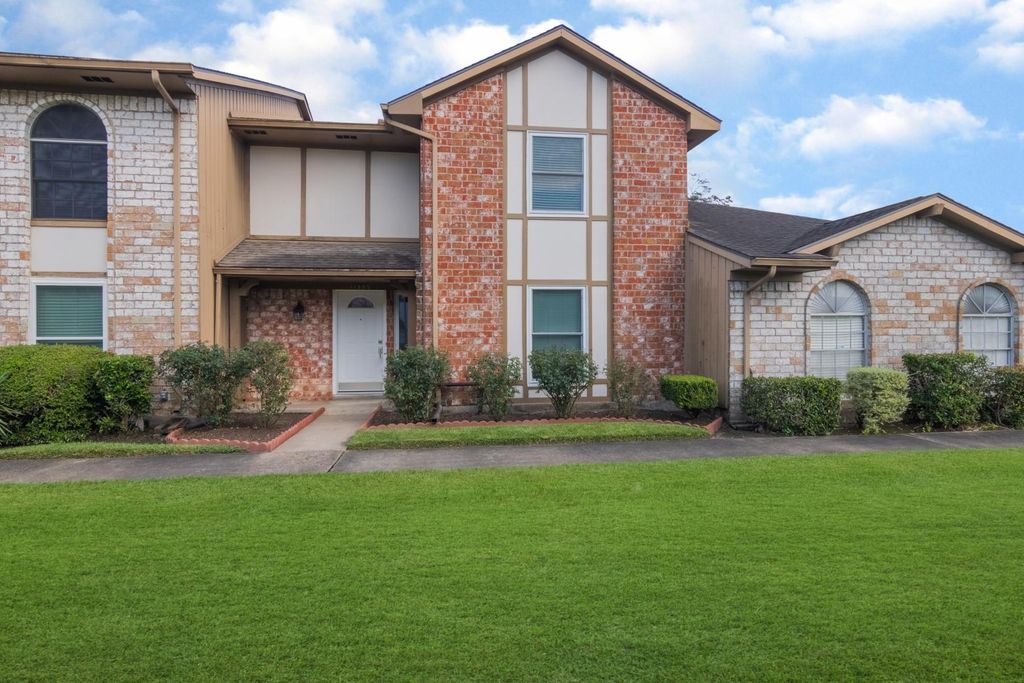 Popular Spacious Sagemont Park Floor Plan. Located in the Courtyard, Laminate Flooring on 1st Floor, Formal Living/Dining/Den and HalfBath. Completely Upgraded Kitchen Cabinetry with Soft Close hardware and Quartz Countertops, Upgraded Windows Thru-out. Partial PEX Plumbing Replacement. 3 Sizable Bedrooms Upstairs , Private Covered Patio, 2 Car Garage. 2 Community Pools. Refrigerator Included.