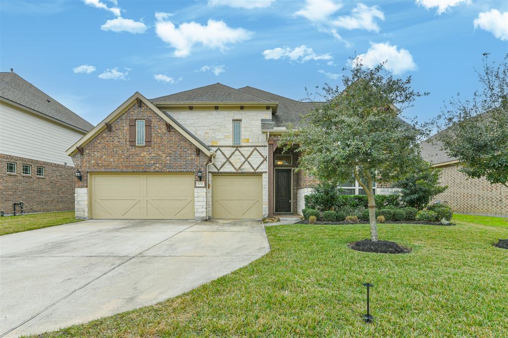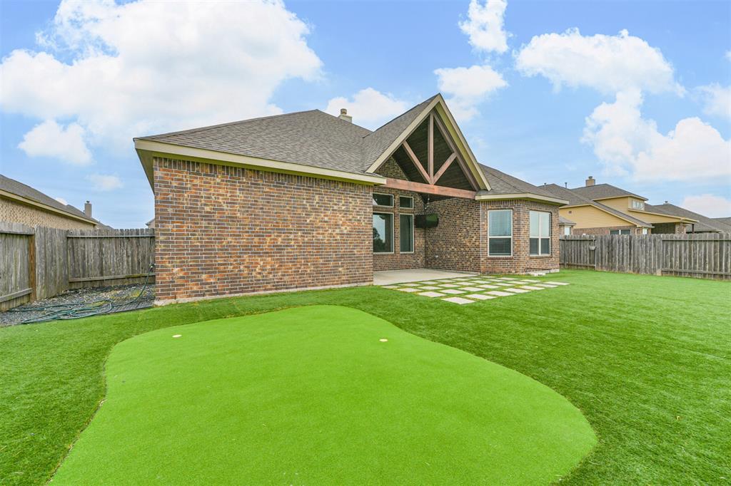 Welcome to this stunning 4-bedroom, 3-bath, single-story home with a 3-car garage, located on a premium lake lot in the sought-after Hidden Lakes community! This popular Villanova floor plan by Gehan Homes offers a perfect blend of style and functionality. The open-concept kitchen features a large island with quartz countertops, stainless steel appliances, and ample storage in beautifully designed cabinets. Real wood floors flow throughout the main living areas, adding warmth and sophistication. The split floor plan includes a spacious primary suite with a luxurious en-suite bathroom boasting herringbone-style tiles, quartz countertops, and an expansive walk-in closet. Two secondary bedrooms are connected by a convenient Jack & Jill bathroom, while the fourth bedroom is ideal for guests or an office. Enjoy movie nights in the media/game room or relax outside with a small golf putting green. Hidden Lakes offers a pool, splash pad, and park. Schedule a showing today!