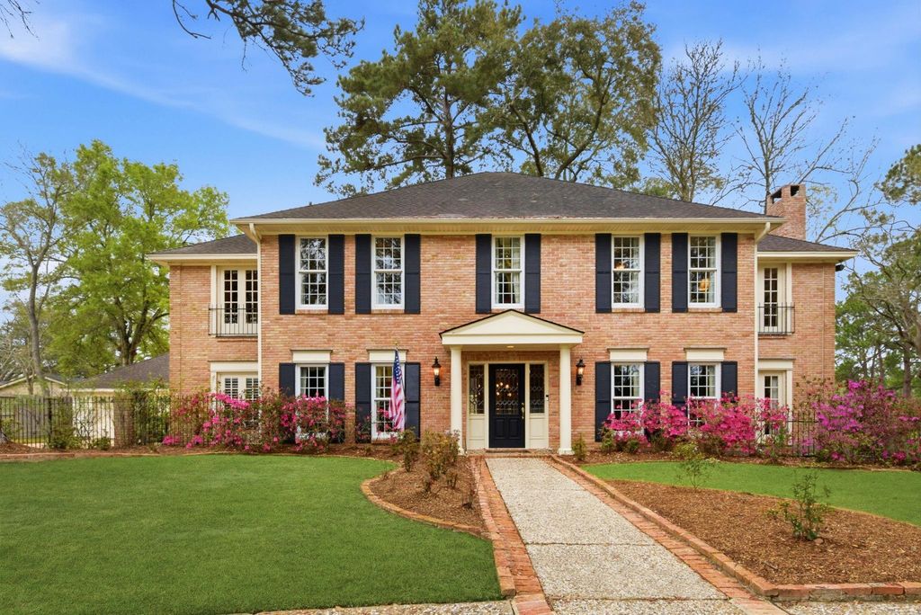 Nestled on a half-acre lot along a quiet street, beside scenic walking trails, this stately home blends timeless charm with thoughtful modern upgrades. The first floor features parquet wood floors, a wet bar, butler’s pantry, functional kitchen with stainless appliances, warming drawer, compactor, and office nook, plus an oversized washroom. A spiral wood staircase leads upstairs to four bedrooms, including the primary suite with a private office and cozy fireplace. Upstairs also offers a large seasonal décor closet and separate cedar closet. Two gas fireplaces, soundproof windows, and built-in shelving add warmth and character. Outdoors, enjoy a sparkling pool and pool house with full bath—perfect for entertaining—plus a greenhouse behind the garage. Additional upgrades include dual AC units, Rinnai tankless water heater, reverse osmosis system, full yard irrigation, PEX plumbing, bell-bottom piers, and an electric driveway gate. A home of character, comfort, and enduring appeal.