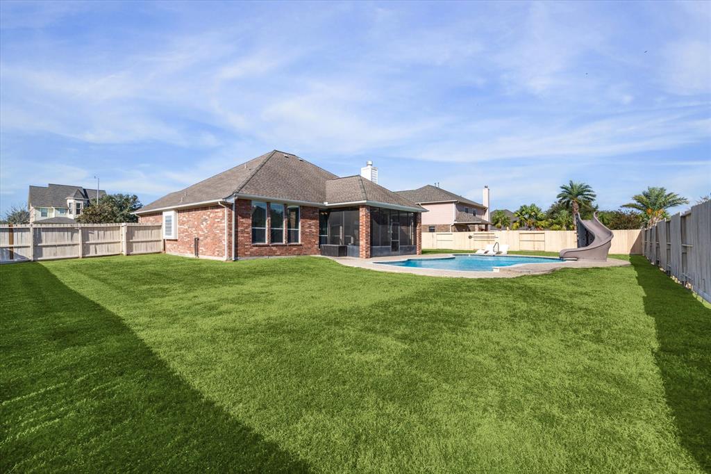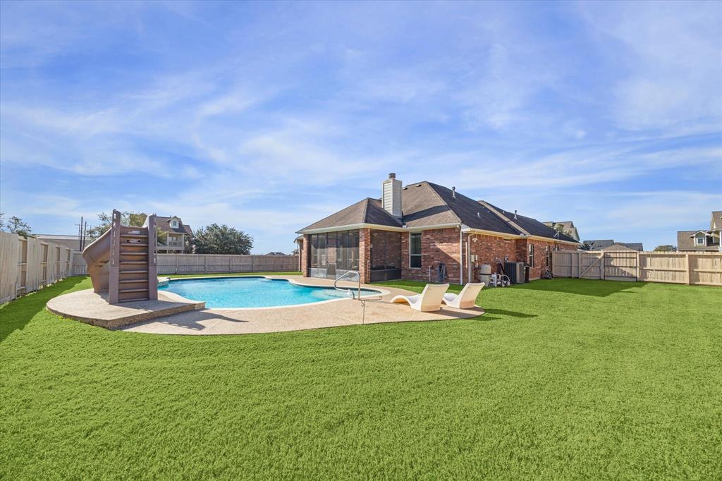 Welcome to your dream home! This beautifully maintained property features 3 spacious bedrooms and 2 baths, along with a dedicated office perfect for remote work. The open concept kitchen and living room create an inviting space for gatherings, complete with a new dishwasher (1 year old) and microwave (2 years old) for modern convenience. Enjoy peace of mind with a new HVAC system installed in 2016 and a durable roof replaced in 2014. Step outside to your screened-in porch, perfect for enjoying beautiful Texas summer evenings. Overlooking a stunning pool oasis—this home is perfect for entertaining or relaxing on warm days. Situated on a large corner, fully fenced lot, this home offers ample outdoor space for play and gardening. Don’t miss this opportunity to own a well-equipped, charming retreat in a desirable neighborhood! LOW TAXES! LOW HOA!