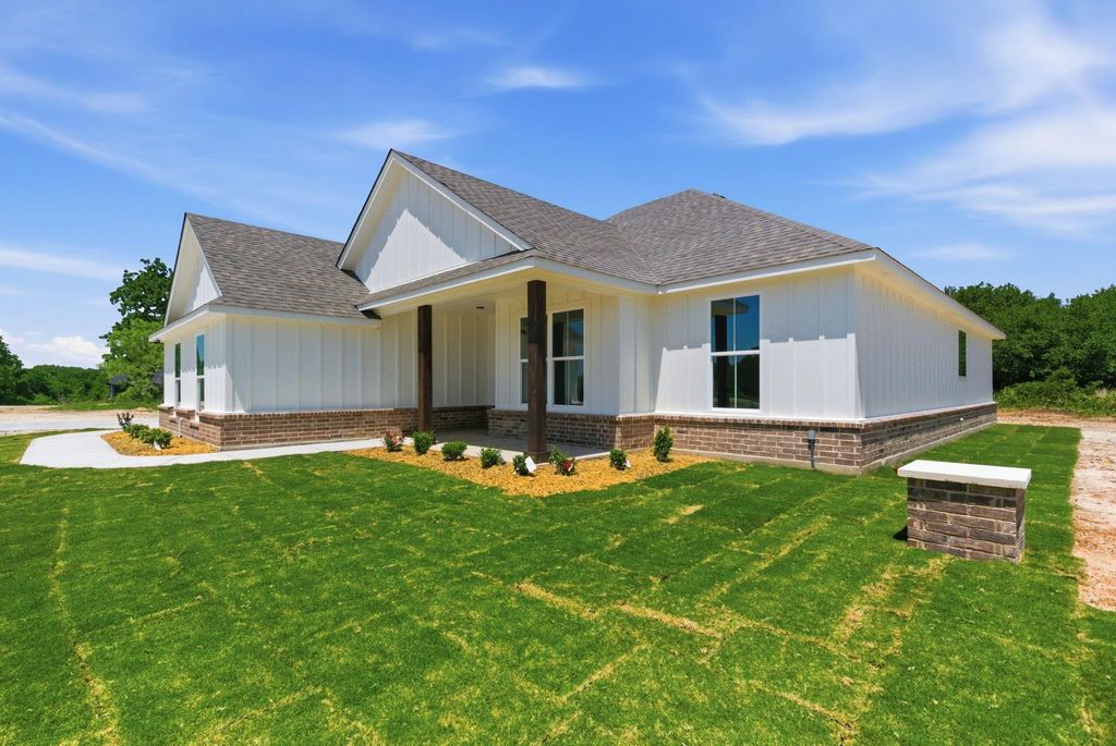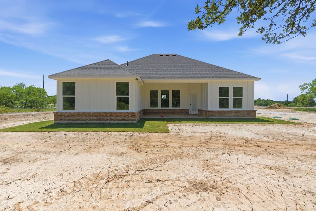 This newly constructed home by Barcelona Custom home features an open-concept layout with generous living spaces and large windows that provide ample natural light. The kitchen is equipped with quartz countertops, custom cabinetry, and modern fixtures. Luxury bathrooms offer sleek tile finishes, and spacious closets provide ample storage. Custom finishes and detailed millwork are found throughout the home, reflecting the builder’s commitment to quality and craftsmanship. A covered patio overlooks the backyard, offering space for outdoor living. Situated on a 2.1-acre lot in the Graystone Estates community, the home provides privacy, room to grow, and the flexibility of rural living—horses allowed, no HOA, and a private water well for added independence. Built with durable materials and thoughtful design, this home is move-in ready and designed for everyday comfort. Residents of Graystone Estates enjoy prairie views and a quiet natural setting, while still benefiting from easy access to nearby cities. The property is conveniently located just 10 minutes from Weatherford and approximately 45 minutes from Fort Worth, making commuting and daily errands simple. A third-party 10-year structural warranty is included for added peace of mind. School District: Millsap ISD
