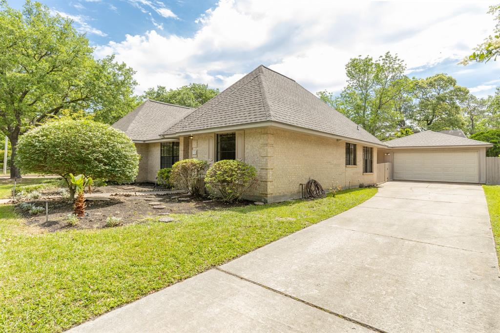 Lovely Hunters Ridge corner lot home with detached 2 car garage, giving lots of driveway space. This spacious home features 4 bedrooms and 2.5 baths, formal living and dining rooms. Galley-style kitchen has granite and back splash and features a spacious pantry, abundance of counter and cabinet space. A large family room has tile floors,built-ins and a fireplace. The primary suite is spacious with bath having separate shower and tub, and is split from the other 3 bedrooms. Utility room is in house.This lovely home features a formal dining room and living room could also be used a study or additional living space. There is no carpet in the home. Home features spacious backyard. On 3 minutes to Kroger and zoned to excellent schools.