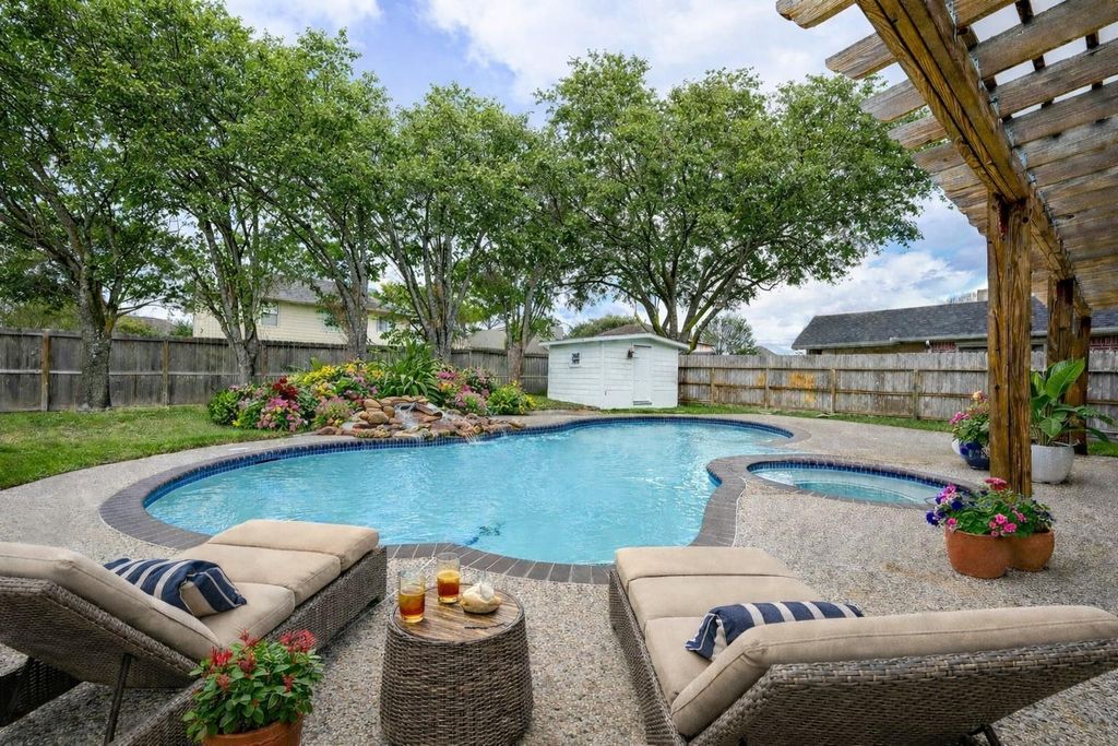 Welcome to 14903 Grandbluff Ct in Cypress Mill Lakes. This immaculate 4 bedroom home features 2 full and 2 half baths, showcasing pride of ownership with a 2024 roof, new carpet, fresh paint, updated fixtures, double pane windows, shutters, and a newly plastered pool. The spacious layout offers comfortable living and entertaining areas, with a sparkling pool, hot tub, and storage shed in the beautifully maintained yard. Move-in ready, this home is a must-see to fully appreciate the care put into it. Zoned to CFISD schools and close to all things Cypress.