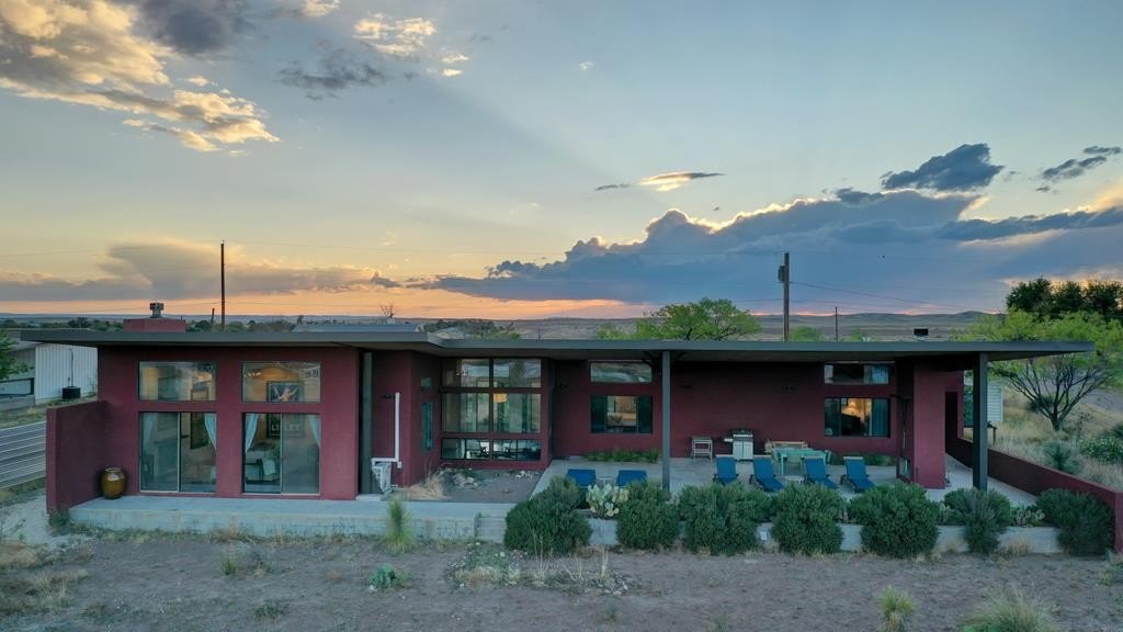 At the highest point in Marfa sits 1104 North Alamito Street, whose contemporary architecture embodies the city surrounding it. The 2/2 main house, by Cameron Armstrong Architects, expertly constructed of Hebel block & structural steel, creates a unique experience in the high desert. Sweeping eastern views of the Haystacks & Puertacita Mountains from the 1500+ sf covered patio. 2 fireplaces, 1/1 Casita and detached storage. 7 Platted lots total .91 acres offer room for pool or future expansion.