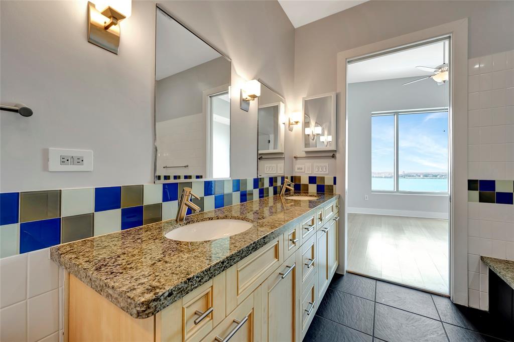 WATERFRONT HIGH RISE WITH MAINTENANCE FREE LIFESTYLE. VIEW OF CLEAR LAKE FROM LIVING, KITCHEN, & BOTH BEDROOMS. PROTECTED PRIVATE BALCONY OVERLOOKING POOL AND LAKE. HIGH END KITCHEN STAINLESS APPLIANCES WITH GAS RANGE. ENGINEERED WOOD FLOORS IN LIVING, & BOTH BEDROOMS. TILE IN ALL WET AREAS. AMENITIES INCLUDE INFINITY POOLS, INDOOR RESISTANCE POOL, FITNESS CENTER, DRY SAUNA, MEDIA ROOM, PARTY ROOM, 24 HR. CONCIERGE/VALET SERVICE. EV CHARGING STATIONS, TWO RESERVED PARKING SPACES IN COVERED GARAGE AND STORAGE CLOSET IN BASEMENT. 24-7 USE OF AMENITIES.