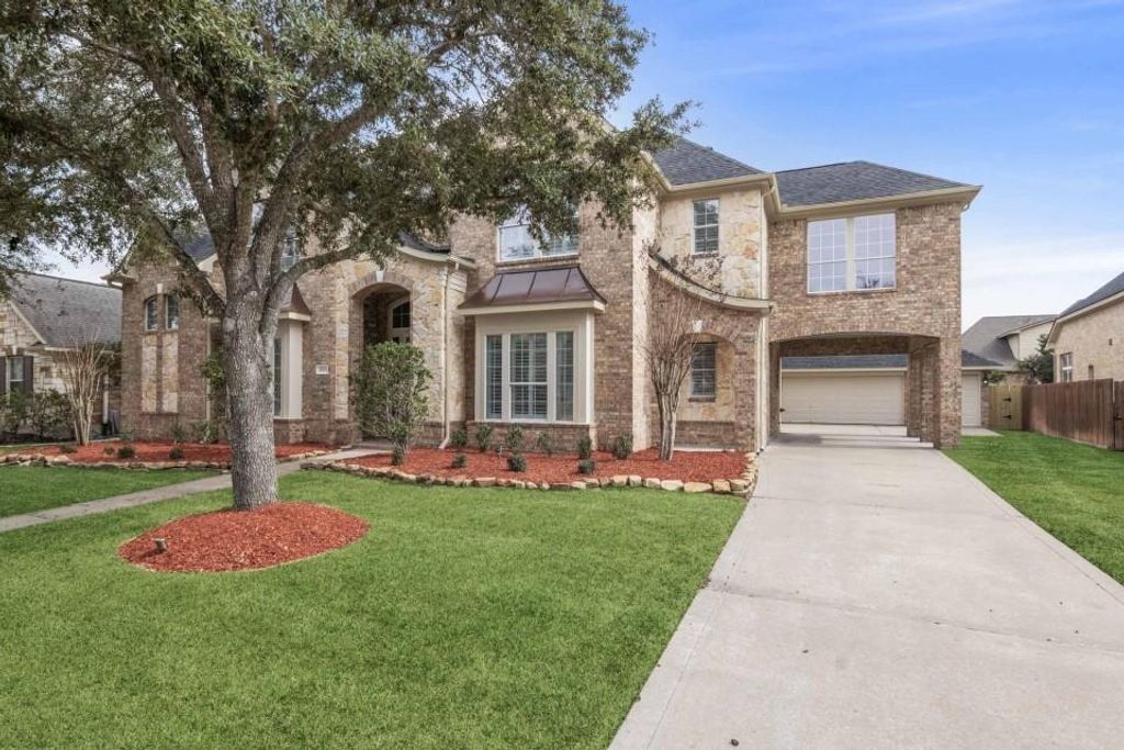 Gorgeous 4 bedroom home with POOL nestled in Sugar Land’s Riverstone community! This beautifully maintained 2-story home features a grand entry with High ceilings refinished hardwood floors, spiral staircase, formal dining, and private study. The open-concept family room with a a gas fireplace, flows to the kitchen with granite countertops, stainless steel appliances. The luxurious downstairs primary suite offers a fireplace, spa-inspired bath with new countertops and updated shower. Upstairs, a spacious game room, media room and a guest suite with private bath. Updates throughout include new paint inside and out, new hardware, lighting, and carpet in all bedrooms. The backyard paradise with a sparkling pool, built-in grill, fire pit, and covered breezeway to the detached garage. Near top-rated schools . Minutes from community lakes, trails and resort-style amenities—this is Riverstone living at its finest!