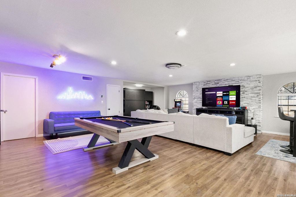 Whether you are looking to take over this airbnb property, or make it your own, you don't want to miss out on this opportunity. This house can be purchased with all furniture ready to convey so you can start booking stays immediately for your short term rental business, or it can be cleared out to make it your own. With amazing updates throughout, you and your guests are going to love the updated kitchen with quartz countertops, tile backsplash, custom cabinetry, and stainless steel appliances, plus the stylish updated bathrooms. The plumbing system throughout the entire house is new as of a year ago to give the buyer extra peace of mind as well. When it comes to entertainment, you have a plethora of choices with the large game room/living room in the back with pool table, 2 arcade games, gaming systems, poker table, and more, or take it outside to enjoy the oversized deck, 2 fire pits, and a hot tub for your enjoyment. This house is a must see, and can all be yours! Make sure to book