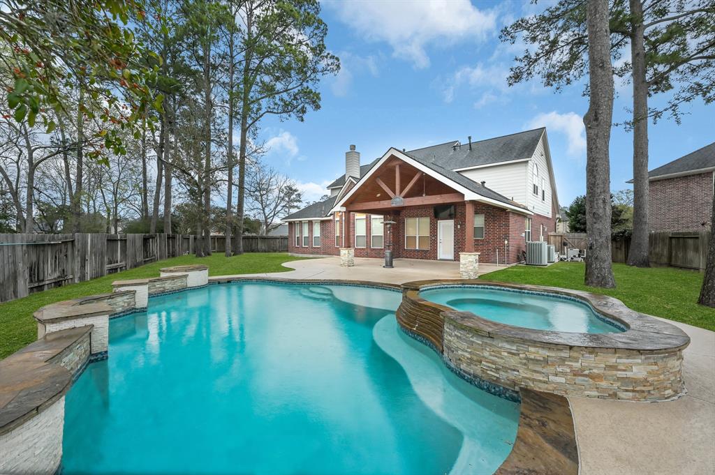 Welcome to 19527 Country Village Dr. This remarkable home boasts 5 bedrooms, 3.5 bathrooms, 2 office spaces, formal dining, a large open concept floor plan and an incredible backyard with views of the community lake. Home is on a culdesac. This home also offers state of the art lighting throughout, updated appliances, recent roof and a split floor plan upstairs with a gameroom. The second office on the first floor can be used as a craft room or even a guest bedroom. The fabulous backyard has an attached patio, large heated pool with in floor cleaning, a hot tub and a firepit with sitting area overlooking the lake. Plus enough grass area for a swing set or tramoline for the kids. A dream backyard!! This well established neighborhood offers tennis courts, swimming pool, and a great club house. Close to everything. Minutes to the new Exxon campus, The Woodlands, 99/Grand Pkwy and IAH. You don't want to miss your perfect home!! Schedule a showing today!!