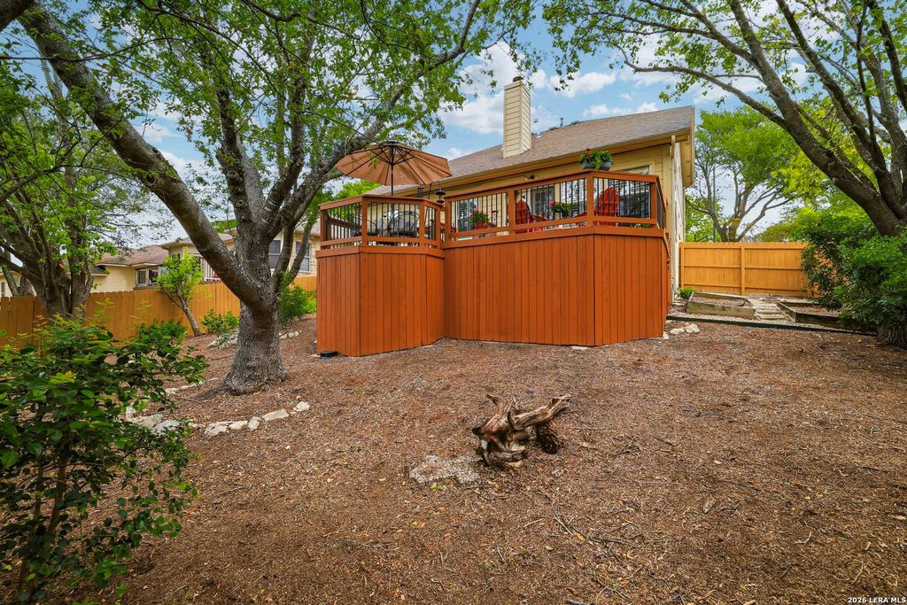 Stunning 4-bedroom, 2.5-bath home plus a versatile flex room-perfect as a mother-in-law suite (connected to bedroom and bath), home office, or game room. This beautifully upgraded property showcases custom shelving in the kitchen, pantry, and primary closet, along with a striking custom wood staircase and elegant European-inspired light fixtures throughout. The kitchen, bathrooms, and flooring have been tastefully renovated with a sophisticated European design. Enjoy outdoor living with added custom deck, enhanced landscaping, and paver stone detailing along the side of the home. Additional upgrades include plantation shutters throughout, fresh interior paint, and a newly painted fence and deck. Located in a small, gated community in a prime, central San Antonio location, this home also features two newer HVAC systems and offers the perfect blend of comfort, style, and convenience.
