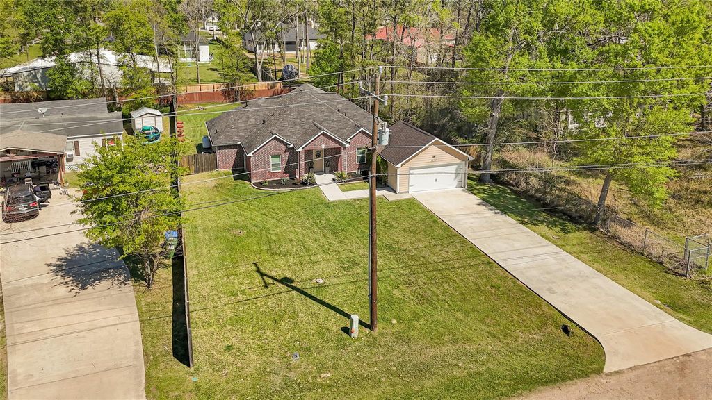 Welcome to 18597 Huckleberry Ln. Elegant one story with high ceilings! 2019 build in pristine condition. True pride of ownership. Three bedrooms with three full bathrooms. Oversized lot - right under HALF AN ACRE. Modern open floor plan with tile flooring throughout. Huge primary bedroom with his and her walk in closets. Gorgeous kitchen with island facing living room. Great outdoor set up with recent 30x30 covered patio. Mature trees in backyard. Water softener installed. Low taxes. Minutes from HWY59/FM1314/GPWY99 and Valley Ranch Town Center. HABLAMOS ESPAÑOL