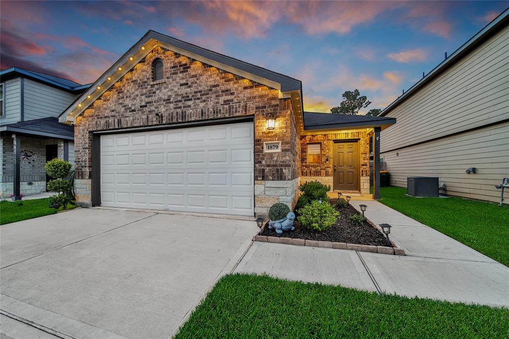 Located in the new community of Hidden Creek Preserve in Conroe! Easy access to FM 1314, Loop 336, and HWY 105, this home combines modern living with convenience. Built in 2023, this stunning residence offers 3 bedrooms and 2 bathrooms, featuring bright, clean finishes throughout. The open-concept design seamlessly connects the kitchen and living room, perfect for entertaining. The kitchen boasts a stylish island with a breakfast bar, stainless steel appliances, FARMHOUSE SINK, a gas stove, and a pantry for all your culinary needs. Retreat to the primary bedroom, complete with an ensuite for added privacy. Enjoy upgraded PLANTATION SHUTTERS on the windows for both style and functionality. The fenced-in backyard ensures your peace and privacy, with the added bonus of no rear neighbors, making it an ideal space for relaxation and outdoor activities. Don't miss out on this exceptional opportunity! Complete with a 2-car garage, this house is ready for you to make it your home!