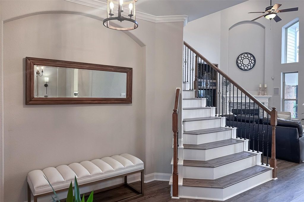 Welcome to this fully upgraded 5-bed, 3.5-bath home perfectly situated in a CUL-DE-SAC! Featuring a HUGE BACKYARD OASIS with SALTWATER POOL AND SPA, a COVERED PATIO, and a HALF BATHROOM —perfect for entertaining. Enjoy an open concept layout with SOARING CEILINGS in the LIVING AREA and a FULLY REMODELED KITCHEN that seamlessly connects with the BREAKFAST nook and FORMAL DINING room. The PRIMARY BEDROOM and the GAMEROOM are UPSTAIRS, ideal for families with young kids. The downstairs SECONARY BEDROOM AND OFFICE can be converted into a great IN-LAWS SUITE option. NEW ROOF (2024), NEW A/C (2023), 3 FULLY REMODELED BATHS, LUXURY FLOORING, and more! TOP RATED SCHOOLS! KAYAK in the close lake! HIKE and BIKE in the George Mitchell Nature Preserve!