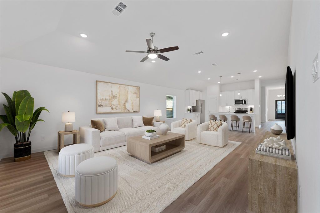 Welcome to this beautifully finished one-story home in the highly desired community of Marvida. Built less than a year ago, this home feels brand new and showcases recent flooring throughout, soft neutral colors, and walls of windows that bring in incredible natural light. The open-concept layout connects the kitchen, dining, and living areas perfectly ideal for entertaining or everyday life. You’ll find four spacious bedrooms including a relaxing primary suite with a large bath and walk-in closet. 2 full baths are shared by the secondary bedrooms. Step outside to a generous backyard with no back neighbors, offering privacy and space for outdoor living, pets, or play. With modern finishes, an airy feel, and a community known for its amenities and convenience, this home is move-in ready and waiting for its next owners to love it.
