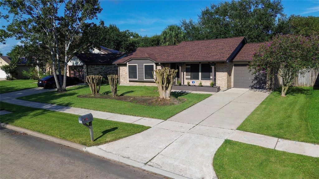 An Answer to youris this charming 3-bedroom home in The Landing subdivision of League City. This move-in ready gem features a new roof, 3-year-old A/C, and a newer garage door opener. The kitchen boasts newer stainless steel appliances, with the refrigerator included, plus a recent washer and dryer for added convenience. Inside, enjoy updated ceiling fans and fresh comfort throughout. Step outside to an oversized backyard pergola, French drain, and the privacy of no back neighbors—perfect for entertaining or relaxing evenings. The trimmed Crepe Myrtles in the front yard will grow into beautiful flowers for lots of shade. A prime location paired with thoughtful updates makes this home a standout opportunity!