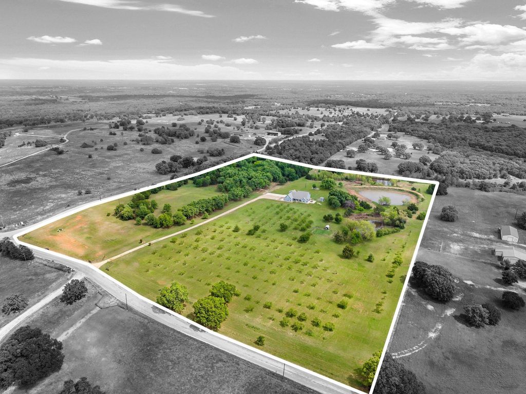 Welcome to an extraordinary North Texas estate where sophistication, self-sufficiency, and natural beauty converge across 20 private acres in Sunset, TX. Framed by gently wooded landscape and enriched by four stocked ponds, this custom-built residence offers a rare opportunity to experience refined country living at its finest. Designed with intention, the home features an open-concept layout with 3 bedrooms, 2.5 baths, a private office, formal dining, and an immersive media room pre-wired for surround sound, - all enhanced by spray foam encapsulation for superior energy efficiency and comfort. The grounds are a true sanctuary—fully irrigated, dotted with mature trees, and complemented by a producing orchard that enhances both beauty and function. Two fully appointed well houses with advanced filtration systems to the home provide a seamless blend of independence and modern convenience, while fiber internet, whole-home smart integration, and a dedicated networking system ensure effortless connectivity. Outdoor living is elevated with curated spaces for gathering and relaxation, including a fire pit, gas-ready grilling & patio dining space , RV accommodations, and a storm shelter with nearby electric access for added peace of mind. The property also features a separate homesite with its own infrastructure offering exceptional flexibility for expansion, guest quarters, or a legacy compound. Additional features include an agricultural exemption for meaningful tax advantages, a powered chicken house, and expandable attic space for future customization. Offered with furniture, this estate presents a rare turnkey opportunity for the discerning buyer seeking privacy, versatility, and a lifestyle without compromise. Select farm equipment is available for sale separately.