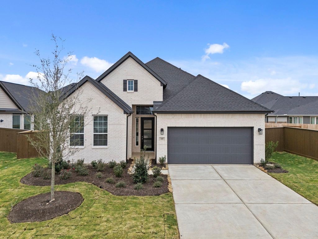 THE SUNNYSIDE IS SO BRIGHT! This adorable, modern Single Story offers 3 Bedrooms, 2 Bathrooms, Study w/ Storage, Covered Outdoor Living Space + 2 Car Attached Garage! Quartz Island Kitchen is Wide Open to Family Room and Casual Dining, allowing for a Great Space Feel! Serene Primary Retreat offers Vaulted Ceiling w/ Beams + Attached Bath w/ Dual Vanities, Soaking Tub, Separate Shower & Walk-In Closet featuring a Dressing Area. Stainless Steel Appliances, 2" Blinds, Upgraded Wood Tile Flooring, Security System, Sprinkler System, Fully Sodded Yard +Front Yard Landscaping Pkg all included!