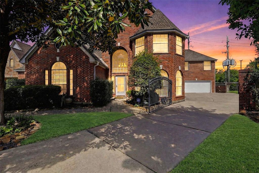 Tucked on a quiet cul-de-sac behind a gated drive, this beautifully designed 4,649 sq ft home blends space, flexibility, and refined comfort. A grand two-story entry opens to warm hardwoods and an inviting layout ideal for everyday living and entertaining. The chef’s kitchen features quartz countertops, gas cooking, double ovens, a generous prep island, and custom Roman shades. French doors lead to a covered pebblestone patio for seamless indoor-outdoor living. The primary suite offers a private office and spa-like bath with oversized shower and freestanding clawfoot tub. A secondary bedroom with its own bath is also downstairs. Upstairs includes a game room and 3 bedrooms—2 with Jack-and-Jill bath and 1 en-suite. All baths recently updated. Garage apartment includes private entrance, 2 bedrooms, full kitchen, bath, and laundry hookups. Centrally located.
