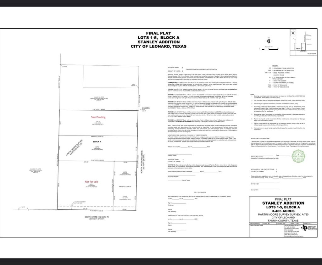 Lot 2, Come build your new home, just west of the town of Leonard and on the outer edge of the city limits. This is a very desirable area of Leonard, about 1 mile from the city square. This new subdivision has 5 tracts and a fully approved plat. One additional lot is available. Call any with questions.