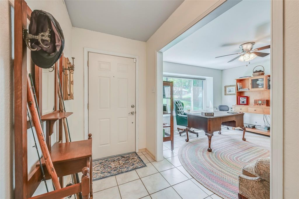 Escape to nature on over half an acre—just 1.3 miles from Grapevine Lake! Nestled on a premium greenbelt lot, this beautifully landscaped property offers peaceful views of wildlife and lush natural surroundings, creating a private retreat right in your own backyard. The expansive outdoor space is ideal for both relaxation and entertaining, featuring a covered patio, pergola, garden beds, and a large storage shed with an attached greenhouse. Whether you're enjoying your morning coffee or hosting gatherings, you'll appreciate the multiple outdoor living areas and serene setting. Inside, the home has been thoughtfully updated with bright tile flooring and a new front picture window that fills the space with natural light. The kitchen features updated cabinetry, granite countertops, a gas stove, and a new sink and faucet. Additional improvements include a newer HVAC system, new roof, solar panels, newer water heater, updated bathroom tile and fixtures, a barn door, and built-in cabinetry in the breakfast nook. The spacious living room showcases exposed beams and a cozy fireplace, seamlessly opening to the kitchen for easy everyday living and entertaining. Located in highly sought-after GCISD, this home is just minutes from trails, the lake, marina, shopping, dining, and local festivals—plus only 15 minutes from the airport. Offering a rare combination of space, updates, location, and natural beauty—this is one you don’t want to miss!