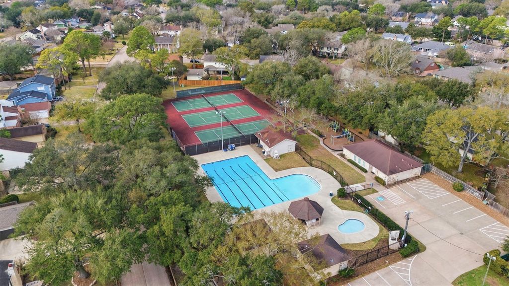 This beautifully maintained home offers spacious bedrooms and elegant, carpet-free living with gorgeous tile flooring throughout. The expansive living area provides the perfect space for gathering and entertaining. The kitchen features granite countertops and includes the refrigerator, along with the washer and dryer for added convenience. The primary suite boasts an oversized walk-in shower, while the secondary bathroom offers double sinks and a tub/shower combination. Enjoy a lovely backyard with a recently replaced fence (approx. 2023), plus a two-car detached garage and an extra-long driveway providing ample parking. Major updates include a new driveway (approx. 2023), recently replaced windows, and a new AC system (approx. 2024). Blinds are installed on the windows, making this home truly move-in ready. Briar Village offers suburban comfort near parks with trails, fields and dog parks. Enjoy a community pool, playgrounds, nearby shopping and easy access to the Energy Corridor.