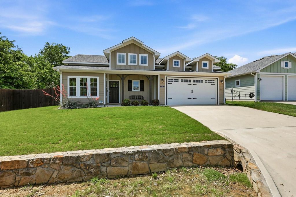 Welcome to this little slice of perfection in Lake Dallas! Offers plenty of room on the side yard for a boat or RV with electric gate!! This craftsman style 3 bedroom home is LOADED with high end, quality, custom finishes throughout! Tucked away on Wilson street where every house has character, this home welcomes you with eye catching curb appeal the moment you drive up! The covered porch encourages time out front. The solid wood door invites you into the open family room and kitchen complete with luxury vinyl plank flooring, plenty of windows offering natural light and electric blinds, fireplace plus mantel, kitchen island bar with granite countertops, gas range, stainless steel appliances, coffee bar, custom wood cabinetry, plenty of kitchen storage and designer lighting fixtures throughout. 3 bedroom and 2 bathrooms offer plenty of room for guests or family. Climate controlled garage finished out with attention to detail and epoxy flooring. Tankless water heater a bonus! Spend time under the covered patio out back. New fence plus electric fence for privacy and security for a boat or RV. 5 minute walk to Lake view marina on Lake Lewisville. Quick access to major roads, restaurants and shopping!