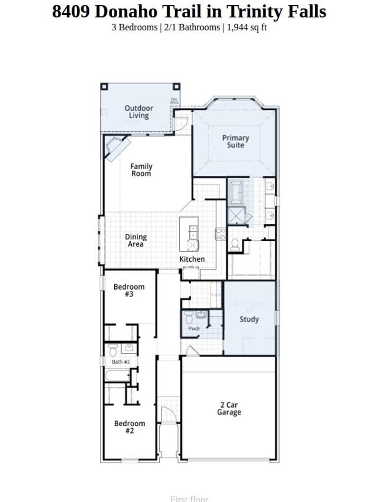 Elevation P on premium corner lot with 2.5 car wide garage! Optional study with powder bath & linen closet in lieu of bedroom #4 & storage. Primary bay window extension & contemporary freestanding tub with separate shower in primary bath. Extended covered patio! Light brick upgrade with black windows & onyx shingles. 10' brick fireplace!