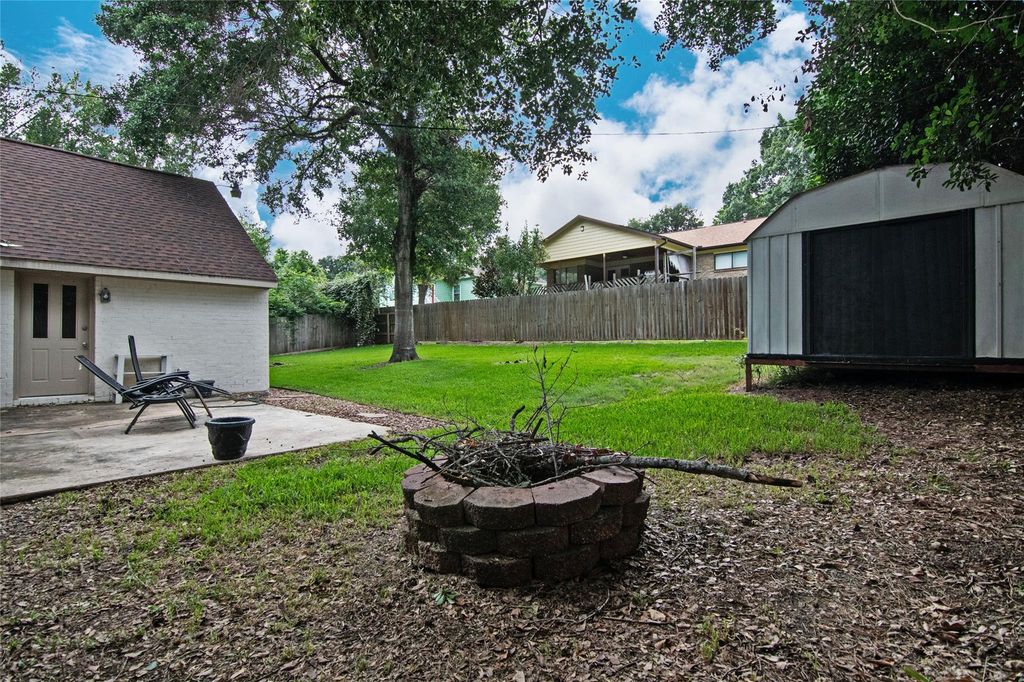 This lovely 5 bed, 3 bath home is situated on a spacious lot within a charming, established neighborhood. Surrounded by mature trees, the house features a welcoming ambiance with warm colors and cozy elements like a wood-burning fireplace, a large bay window, and vinyl wood flooring. The primary bedroom, along with two additional bedrooms and two baths, is located downstairs. These bathrooms are adorned with granite countertops, custom cabinetry, and tile flooring. The living area opens up to a cozy eating space adjacent to the kitchen, which boasts a subway-tile backsplash, granite countertops, and custom cabinetry. Upstairs, you'll find two more generously sized bedrooms and another full bath with similar decor features. The fully fenced backyard is perfect for entertaining, with ample space for gatherings around the fire pit or cooking on the patio. This home is conveniently located near all the amenities Brenham has to offer, including dining, entertainment, and shopping.