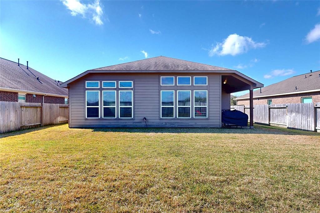 Welcome to this beautiful one story home in Stone Creek Ranch. The home has a open-concept living. The kitchen is equipped with stainless steel appliances, 42" cabinetry with modern hardware, ample cabinet space, granite countertops, an island with sink and recessed lighting. Large breakfast bar & a walk-in pantry. Spacious dining room with recessed lighting. The secluded primary suite offers a soaking tub, separate shower, granite countertops dual sinks & a large walk-in closet. Upgraded flooring in all main living areas. Both bathrooms have been outfitted with upgraded light fixtures and mirror treatments to give the home and baths more luxurious feeling. 3in Window blinds are included thru out the home. Walk-in closets in both guest bedrooms. Covered rear patio with gas line in place (for BBQ or Grill). Sprinkler system, large and private back yard with neighborhood amenities: pool, clubhouse, lake with paved trail & playground. Conveniently located just minutes from 99 & 290.