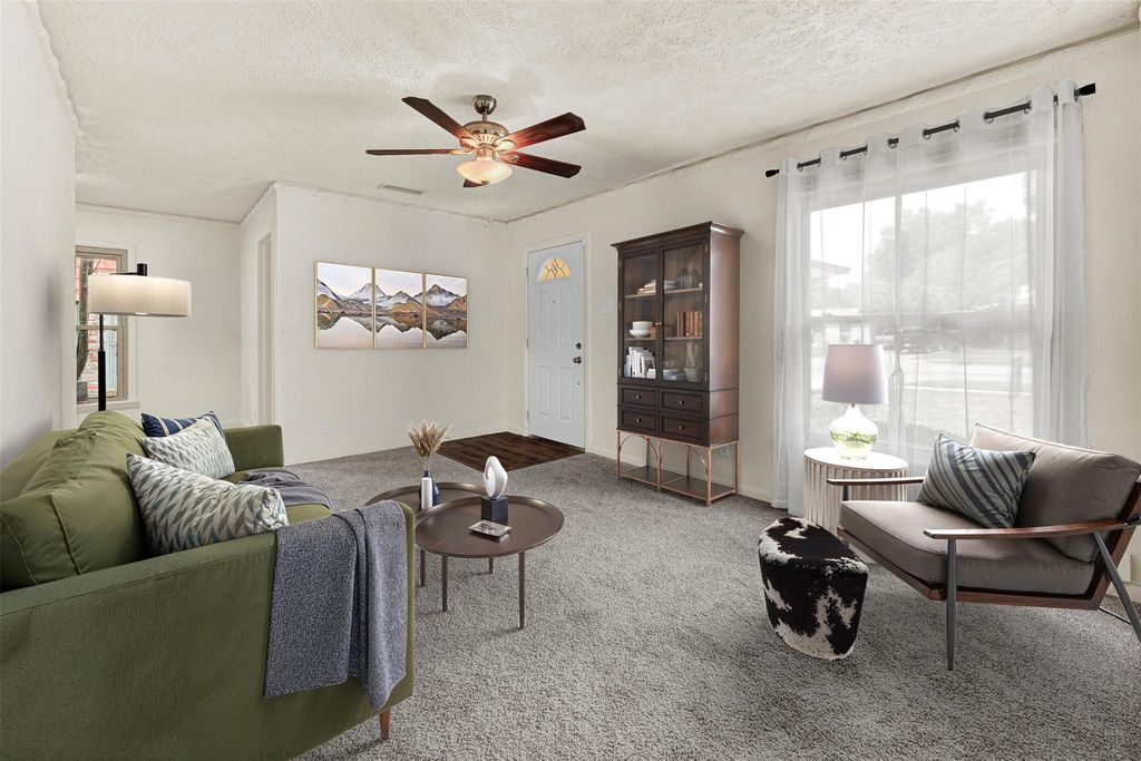 Don't miss is GEM of a family home! Brick home has been Newly refurbished and clean as a whistle! Nice front porch leads to a newly carpeted living room with natural light leading to the 'heart of the home' Dining room, Breakfast and Kitchen with new upscale flooring with awesome newer LG gas stove with new Stainless Hood and and lots of cabinet space. Roof 2024, HVAC 2023, Newer Electric box, Large, clean and nice Storage building in backyard. Washer-Dryer stays! Fresh paint and many new fans and fixtures! Primary Bedroom has easy access to this heart of the home with tiled shower, clothes washer and dryer. Two bedrooms off the Living Room are spacious with new carpet. Hallway leads to bath with tub-shower combination and down that hall is the kitchen with natural light streaming from window over the sink. Backyard is perfect for a home-garden and a big asset is the newer Storage building & fenced back yard. Feel the warmth of this home as you enter into new flooring and paint throughout, new windows all around house and front door all replaced in 2025, newer HVAC unit, electrical panel work recently done, landscaping trimmed! Please remove shoes when entering or wear booties. All is ready for a new family to enjoy and move in ready!! Hurry, this won't last long!